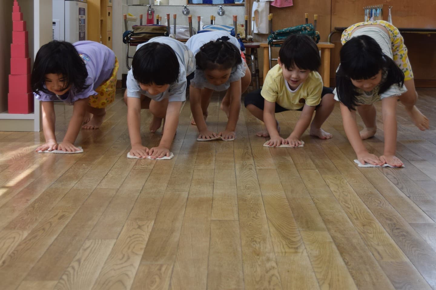 桂保育園「ぞうきんダッシュ、よーいドン!」